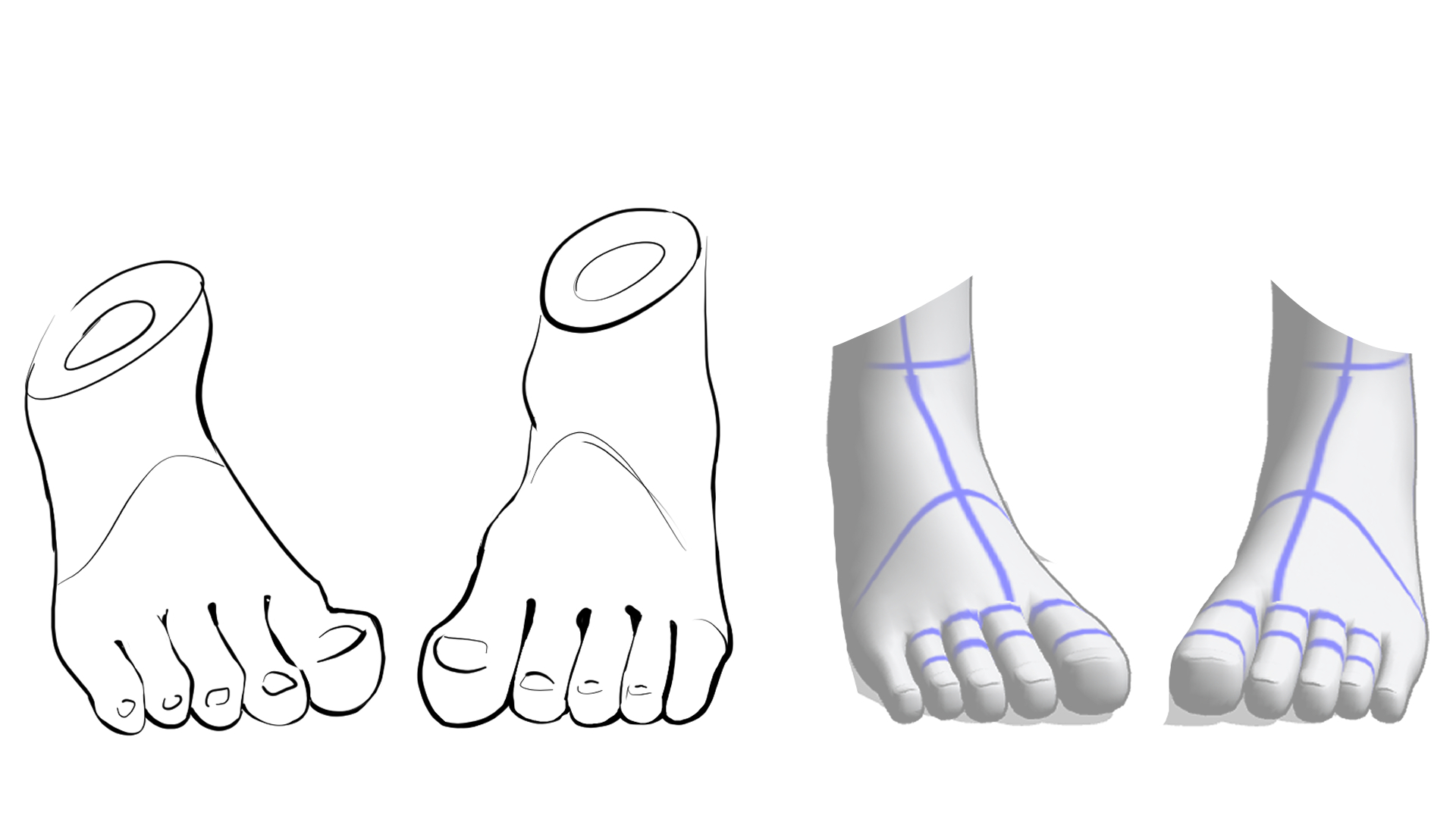 Always begin by drawing the general shapemajor. Draw the overall shape of the back of the foot with that in mind.